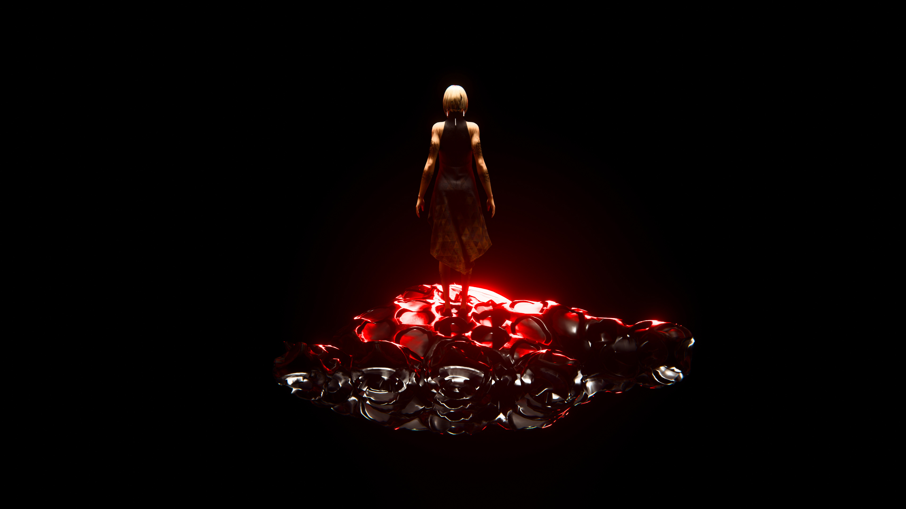 "The scene bursts into life with a sudden, jarring energy. Night drapes the city in a cold embrace, while the streets teem with a frenetic pulse. A muted blue haze cloaks the air, as the buildings in the background shimmer like distant stars. Amidst the ebb and flow of people and cars, a solitary figure stands unwavering. Despite the rains persistent whisper, no umbrellas punctuate the crowd; they have collectively forgotten such trivialities. Each soul is entranced, ensnared by the glow of a screen. Yet, the pianist remains untouched by their oblivion, a beacon of stillness in a restless world."